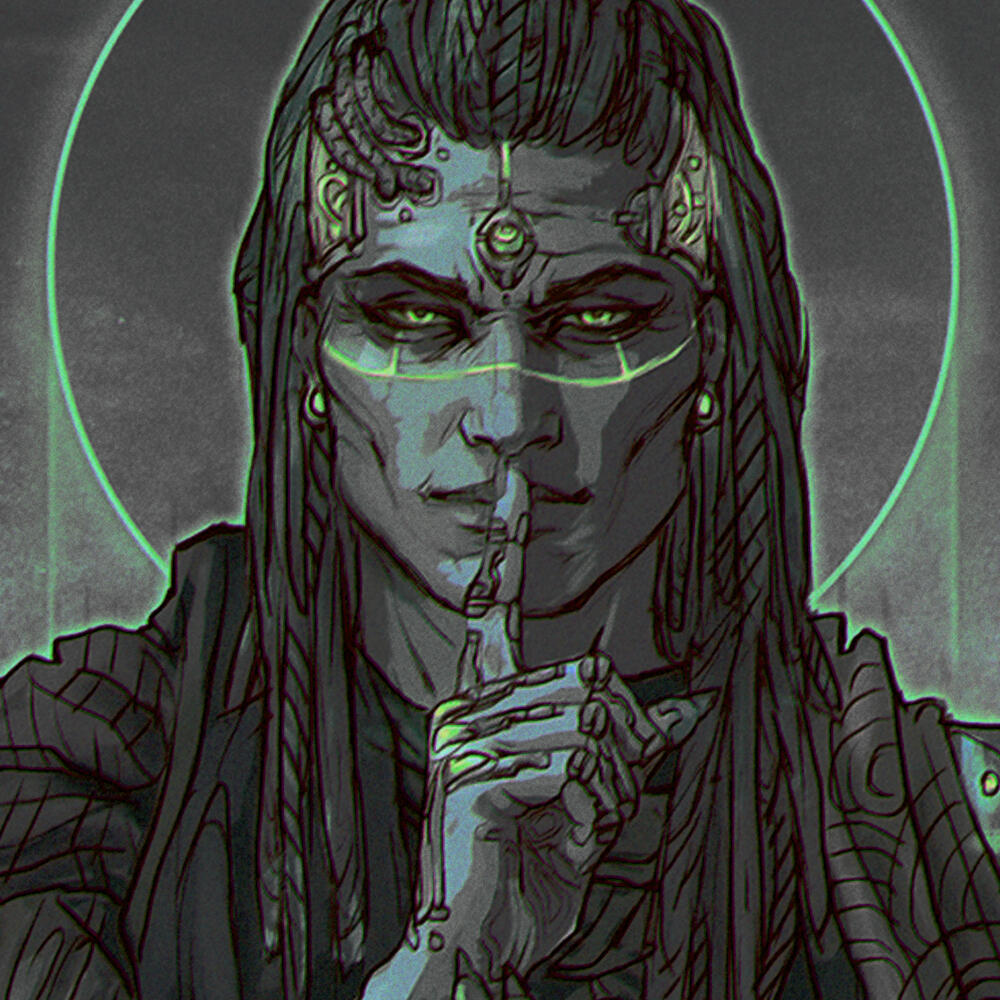 Lord Akhenaten (aka White Jackal) – master of self-improvement and self-augmentation, extremely talented in the field of biotechnology; creator of synthetic life forms following his hive. A sharp political mind born in the Outer Circles. He ruled as the Supreme Monarch for over 30 years. During the first years of his reign as the fourth monarch since the catastrophic fall of Seventh Circle – formerly the guild's capital ring – Akhenaten turned out to be the first to restore the dignity and importance of the Necromancers by introducing his original projects and biomechanical solutions to the daily life of the guild.Akhenaten developed a deep (and eventually unhealthy) fascination with one of the other royal bloodlines – the Ahenamons, descendants of extraterrestrial wanderers, according to legends. Although he did not participate in the official religious life of the Necromancers, White Jackal believed in powers beyond the reach of mere mortals.Sadly, in the last 8 years of his reign, Akhenaten went down the path of tyranny and physical terror. Despite his potential to govern properly, he ended up being an egoistic ruler who slowly brought the Necromancers Guild back to ruin with his sick caste system and controversial large-scale experiments. After many dramatic experiences with the Ahenamon domain, his mind was plagued by schizophrenic swings. He got lost in his search for knowledge that would grant him true immortality, necessarily alongside his only ward – Amenhotep, the treasure of the monarch's heart, and the object of his unbridled obsession.Ultimately, he was killed during the great revolution, first preceded by manipulations and finally by the betrayal of his beloved Prince. After 14 years, he returns as a Testament looking for a way to regain the entirety of his original self.